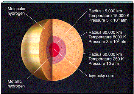 또한 토성의 안쪽으로 더 내려가면, 토성의 압력은 기하급수적으로 높아져 수소는 결국 액체 금속 상태로 변하게 됩니다.