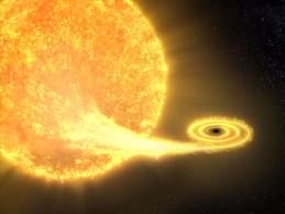 이 블랙홀은 대략 1만년을 주기로 가까이 다가오는 별을 스파게티처럼 늘어뜨리며 빨아들이고 있죠.