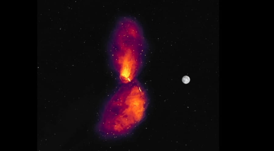 이 블랙홀 제트의 흔적은 무려 보름달 16개에 달하는 크기를 가지고 있었습니다.