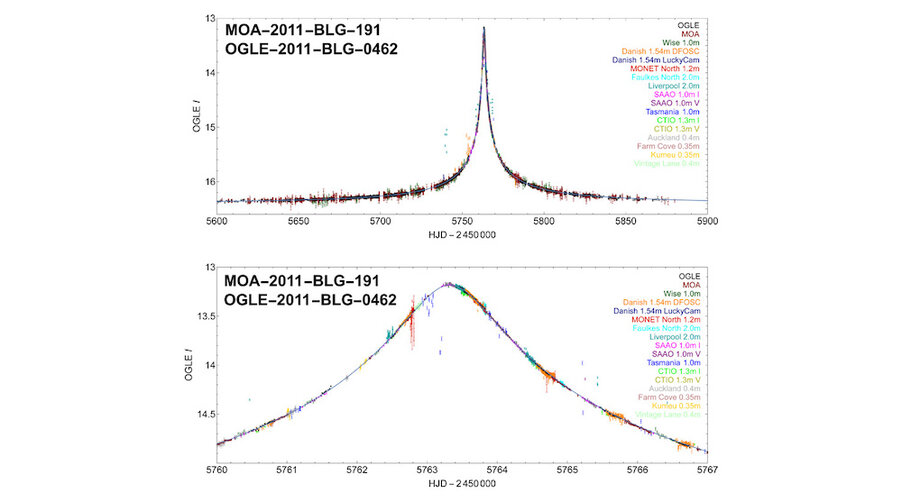 시간이 지남에 따라 별의 밝기가 비정상적으로 증폭되는 중력렌즈 현상이 발견된 겁니다.
