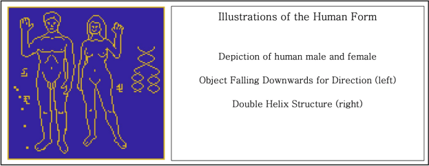 예를 들면, 남성과 여성의 모습, 지구 대륙의 모습 그리고 태양계와 DNA의 구조 등을 담고 있습니다.