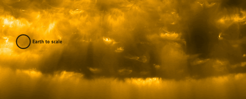 참고로 솔라 오비터는 태양의 남극에서 약 4,790만km 떨어진 곳에서 이 사진을 촬영했는데요.