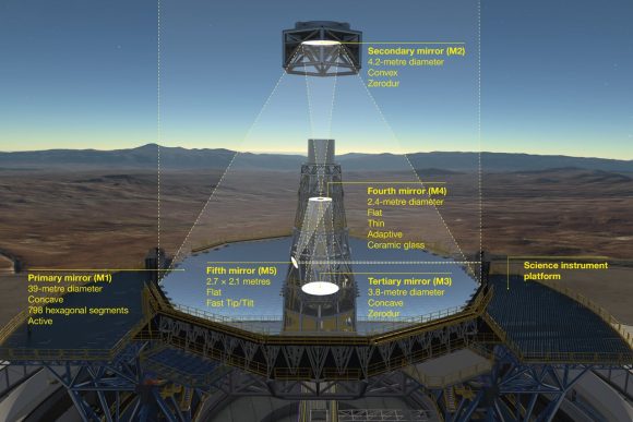 아주 특이하게도 유럽 초대형 망원경은 총 5개의 거울들로 구성되어 있는데요.