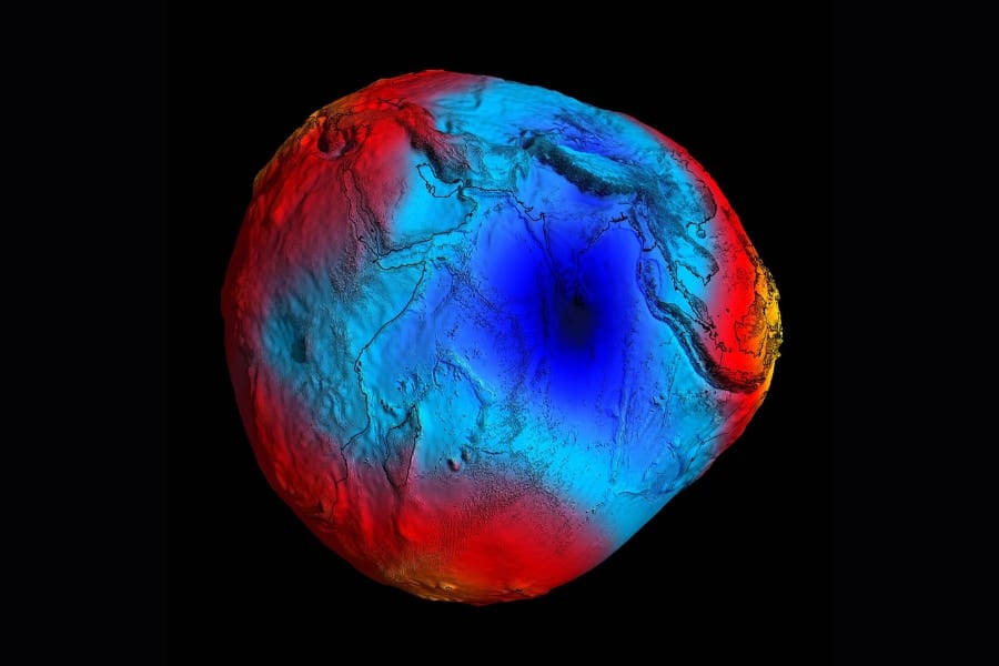 여기, 지구의 중력을 표시해 놓은 지도가 있습니다.