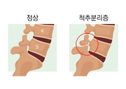 척추분리증은 척추뼈를 서로 연결해주는 부위가 분리되는 증상을 말합니다.