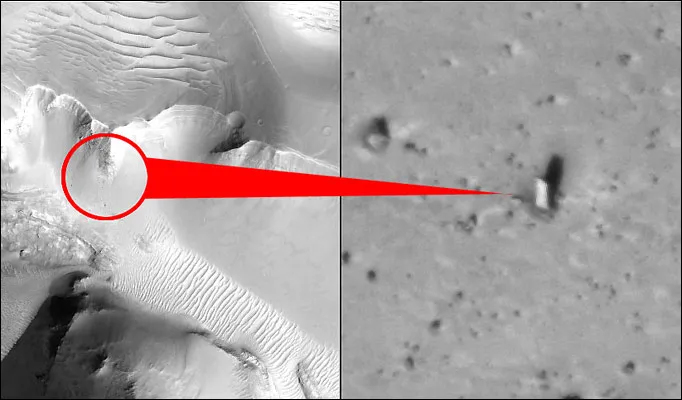 너무 기괴하게도 이 물체는 직사각형의 모양으로 화성 표면에 우뚝 서 있었습니다.