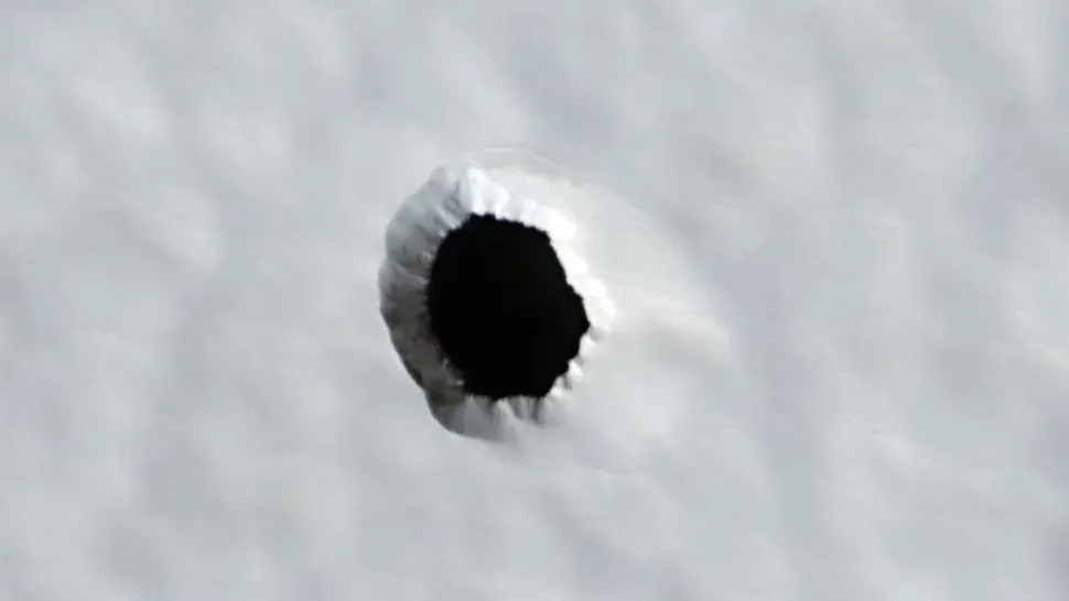 화성의 표면에서 미지의 구멍이 발견되었습니다.