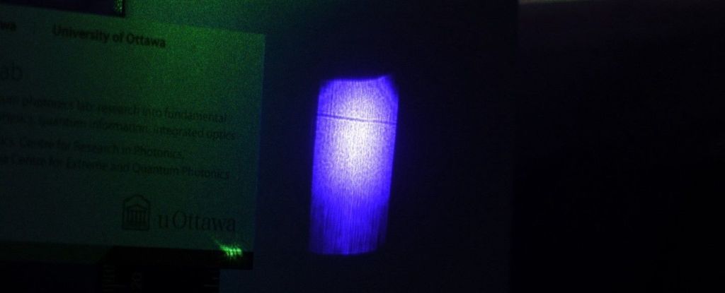 이것은 틀림없는 녹색 레이저 빛에 가려진 청색 레이저 빛의 그림자였습니다.