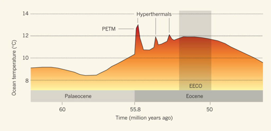 약 5,600만년 전, 팔세오세-에오세 극열기(PETM).
