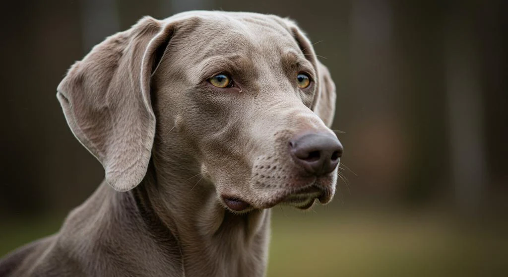 와이머라너는 독특한 은회색의 털과 커다랗고 부드러운 귀가 특징입니다.
