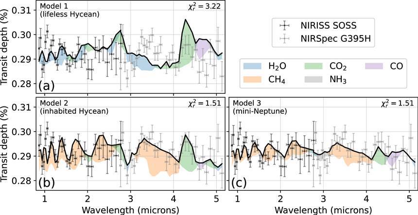 이렇게 과학자들은 제임스 웹의 중적외선을 이용해서, K2-18b의 대기를 다시 살펴보기 시작했습니다.