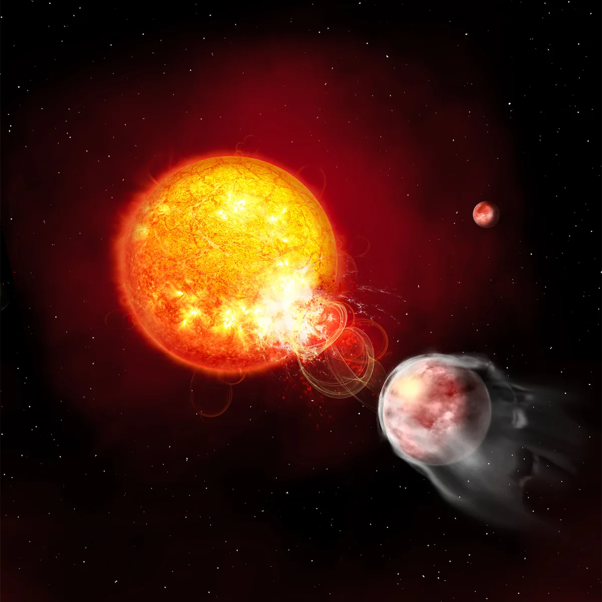 별이 내뿜는 강력한 방사선과 불꽃을