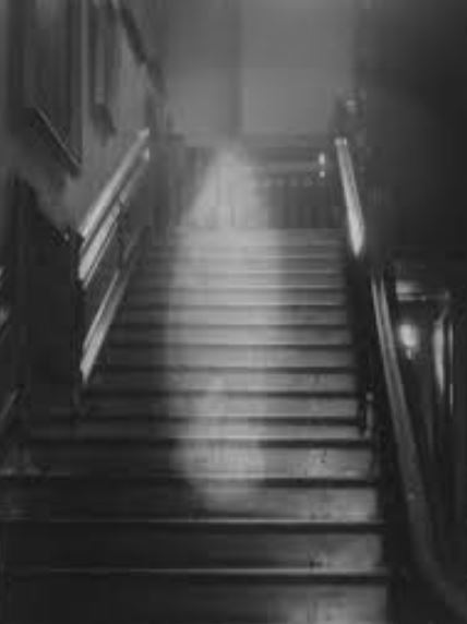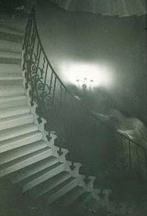 "저기! 계단에 유령이 내려오고 있어요!"