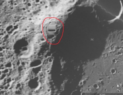 과거 NASA의 클레멘타인 임무가 촬영한 달 사진에서, 자연적으로는 생성될 수 없는 구조물이 발견되었다고 그는 주장합니다.