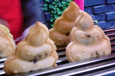 귀여운 만화 캐릭터 똥 모양의 빵 안에, 달콤한 팥과 호두가 들어있죠.