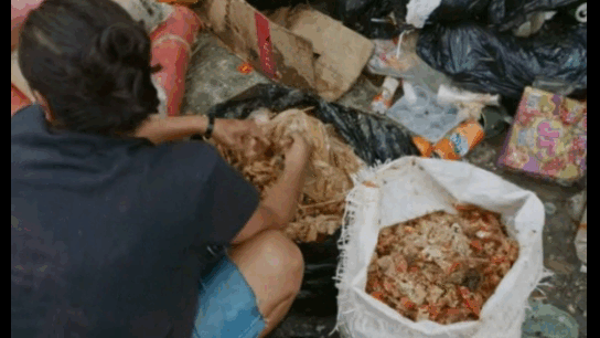 패스트푸드점이나 레스토랑의 쓰레기통에서, 사람들이 먹다 남긴 닭 뼈나 고기 조각들을 수거합니다.