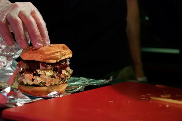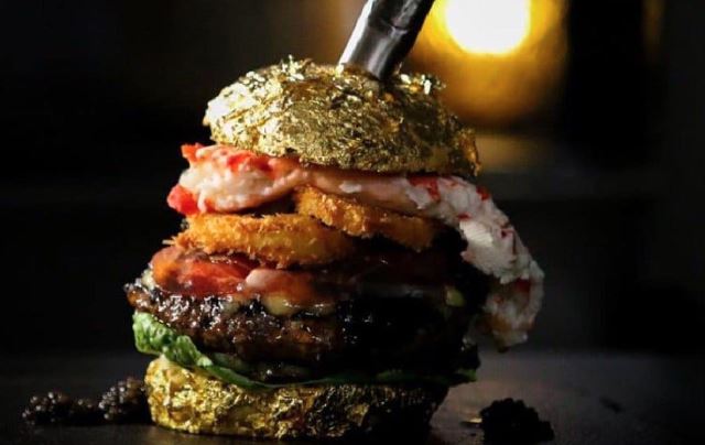 식용 금박으로 감싼 고베 소고기 패티, 푸아그라, 캐비어, 랍스터, 트러플, 샴페인 증기로 녹인 그뤼에르 치즈, 그리고 사향고양이의 배설물로 만든 '코피 루왁' 커피 BBQ 소스까지.