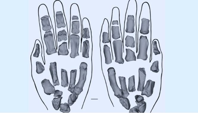 하지만 그들의 신원이 확실한(두개골과 연결된) 손 화석은 그동안 발견된 적이 없었습니다.