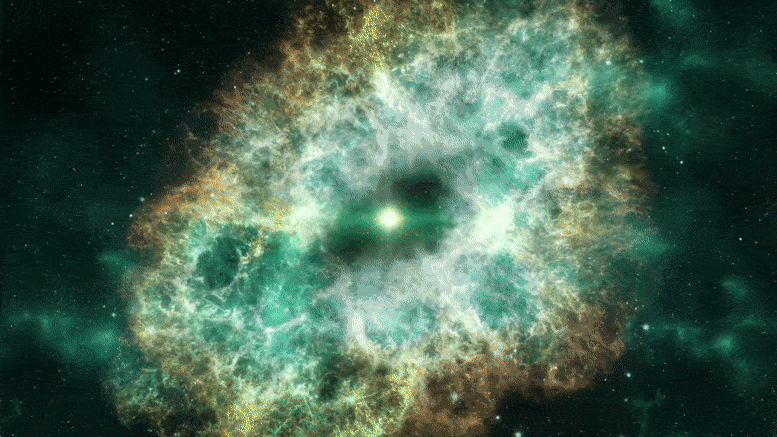 이 거대한 별의 죽음은 어마어마한 양의 원자들을 은하와 은하 사이의 텅 빈 암흑 속으로 흩뿌렸습니다.