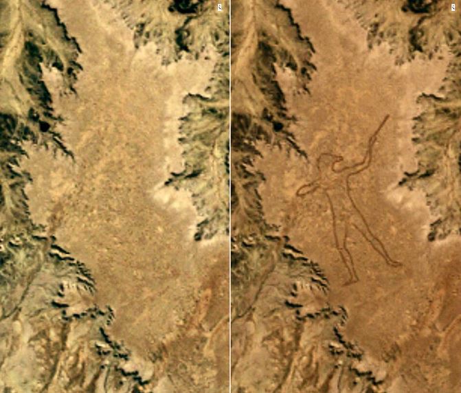 땅을 파내어 윤곽선을 그린 이 지상화는, 페루의 나스카 라인보다 5배나 더 거대한 크기였죠.