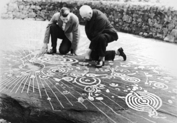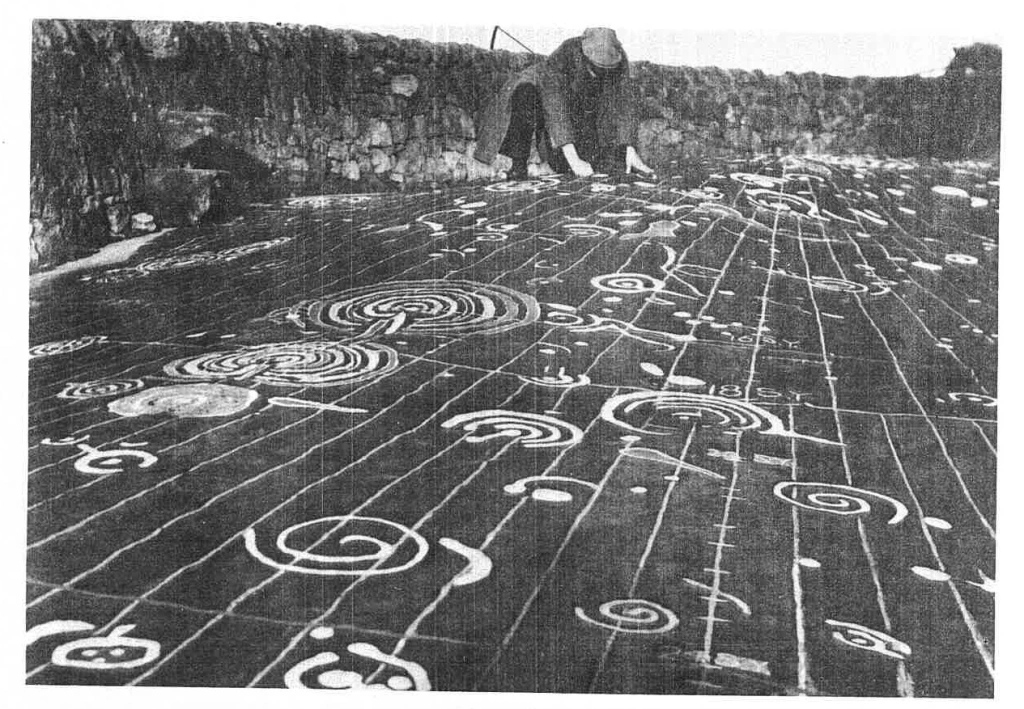 이 돌에는 약 90여 개의 기묘한 나선형, 동심원 무늬(페트로그리프)가 새겨져 있는데요.