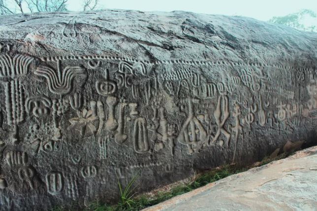 약 6,000년 전의 것으로 추정되는 이 바위 표면에는 해독 불가능한 기호들로 가득 차 있는데요.