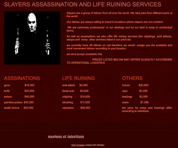 7. 암살 청부 (Hitman Services - 대부분 사기)