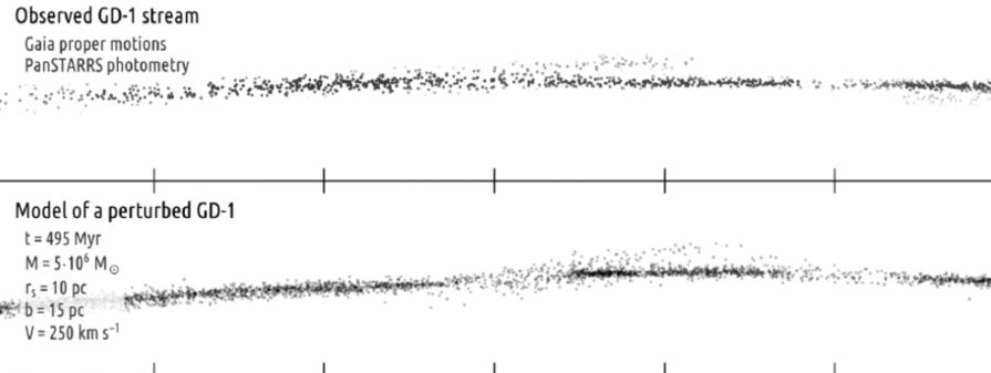 거대한 무언가가 이 별들의 행렬을 돌파했고, 이 물체의 엄청난 중력 때문에 많은 별들이 흐트러진 것처럼 보였죠.