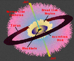강착 원반의 빛이 광역선 영역의 가스 구름에 닿게 되면 가슴 구름의 원자가 이온화되면서 특유의 빛을 방출하게 됩니다.