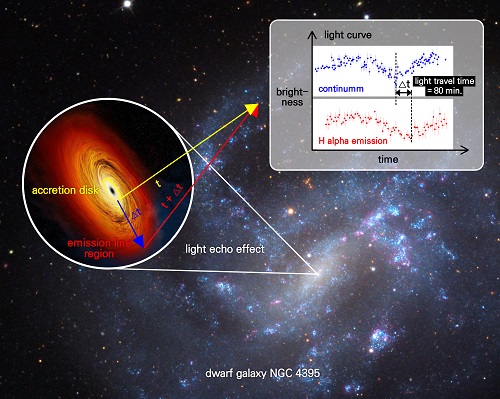 NGC 4395의 블랙홀의 질량을 구하기 위해서 우 교수 연구팀은 "반향 측량법(반향 매핑)" 이라는 방법을 사용했는데요.