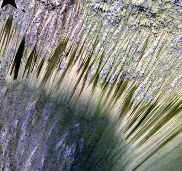 그리고 NASA는 소금물이 이 경사면 표면을 흐르고 있을 것이라 발표했죠.