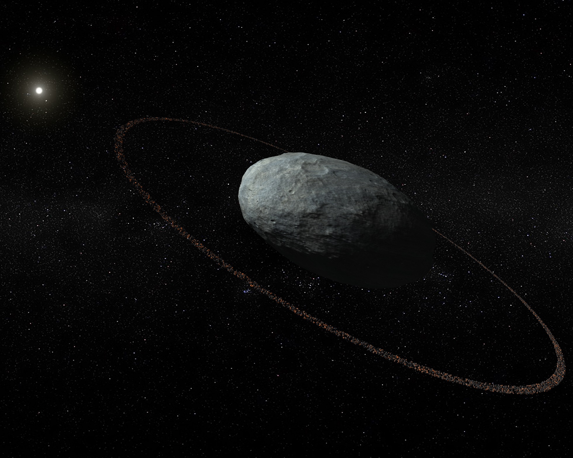 이 왜소 행성의 주위를 돌고 있는 아주 얇은 고리가 발견되었던 것이죠.