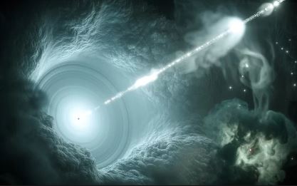 이 중성미자는 은하계의 중심에 있는 거대한 블랙홀인 "블레이자(blazar)"에 의해 40억년 전에 지구를 향해 던져졌습니다.