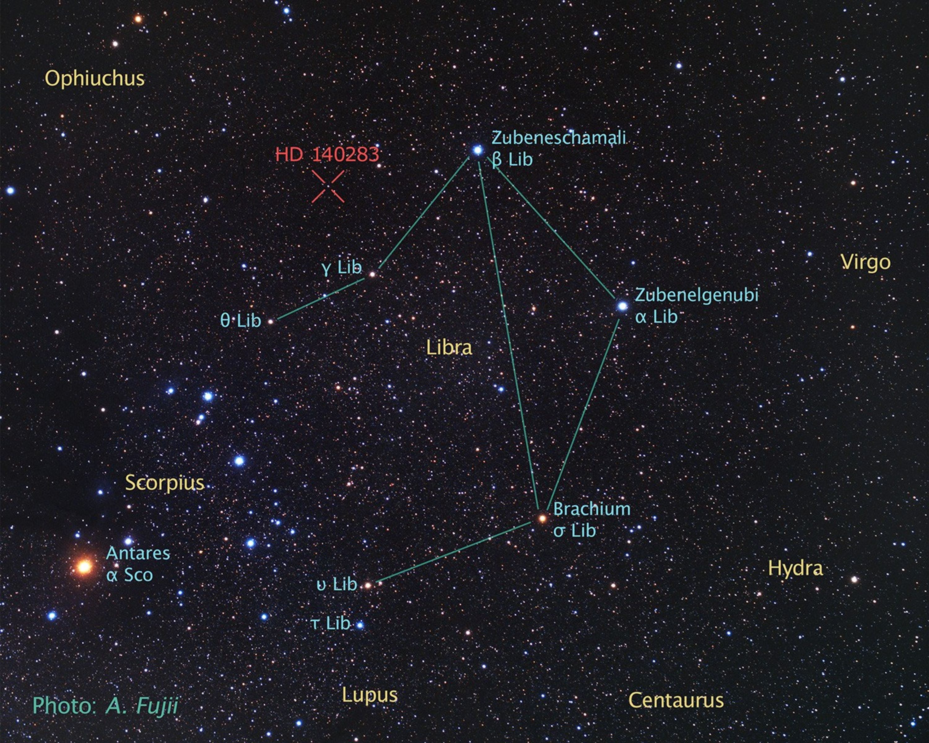 그곳에는 '므두셀라(Methuselah)'라는 별명을 가진 아주 늙은 별, HD 140283이 있습니다.