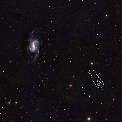 이 은하는 막대형의 나선 은하이며(빗장 나선 은하), 은하 중심에 포함되어 있는 가스가 길게 늘어뜨린 형태로 은하 바깥쪽으로 밀려나가고 있죠.