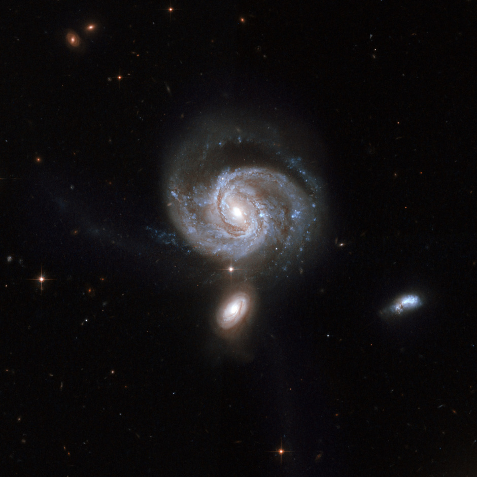 위의 사진은 다른 은하를 잡아먹고 있는 은하들의 습성을 직접 촬영한 사진이며, 한 번에 두 개 이상의 이웃 은하를 잡아먹고 있는 유일한 사례이기도 합니다.