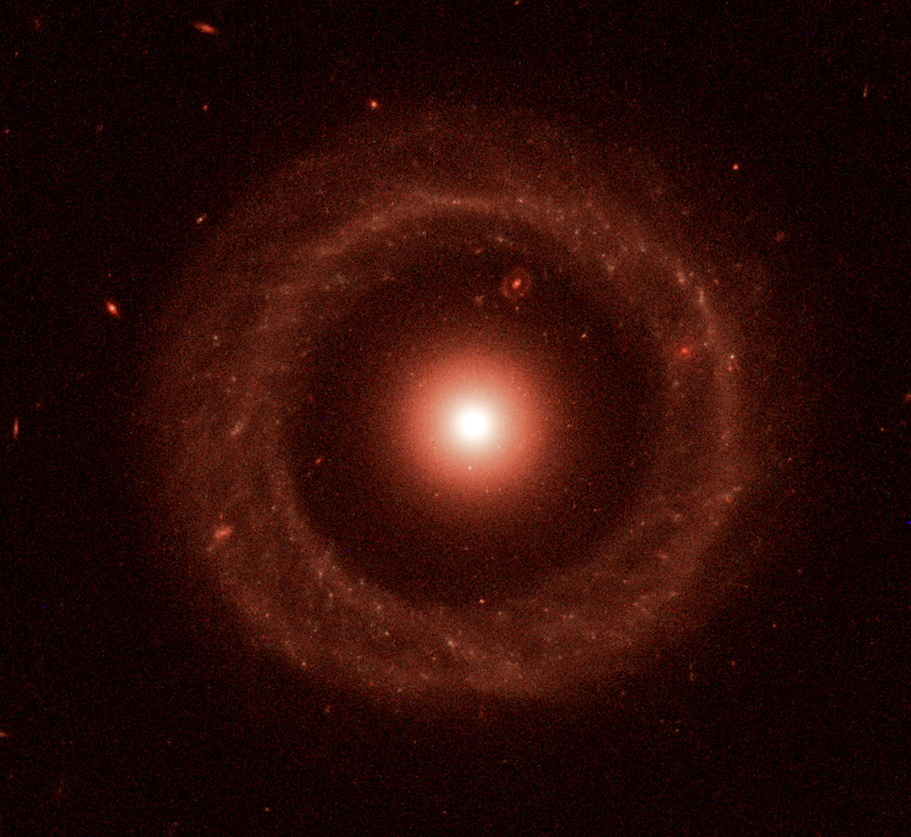 허블 우주 망원경에 의해 촬영된 최근의 이미지를 살펴 보면, 수십억 개의 푸른 별들로 이루어진 바깥쪽 고리가 훨씬 작고 밀도가 높은 붉은 별들의 주위를 둘러싸 완벽한 원의 형태를 이루고 있었습니다.