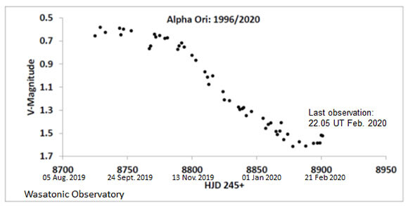 하지만 최근 "천문학자의 전보(Astronomer's Telegram)" 2월 22일자에 따르면, 베텔게우스가 다시 빛을 되찾기 시작했다고 하는데요.