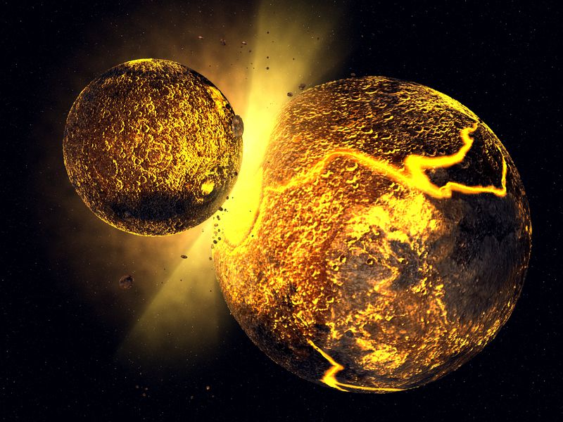 약 45억 년 전, 테이아(Theia)라는 이름을 가진 화성 크기의 행성이 지구와 충돌했습니다.
