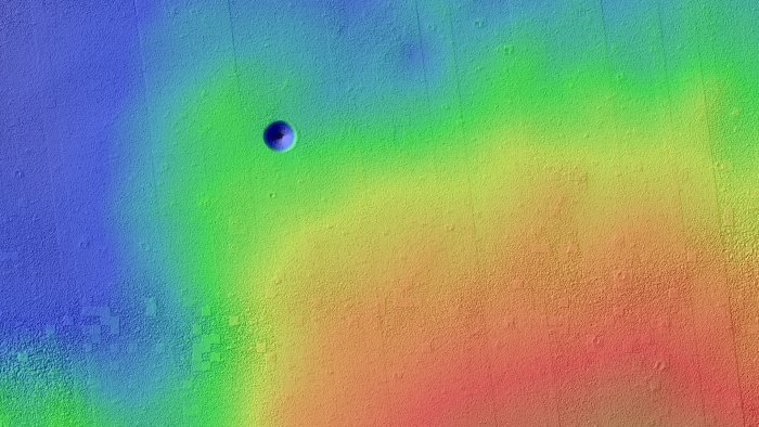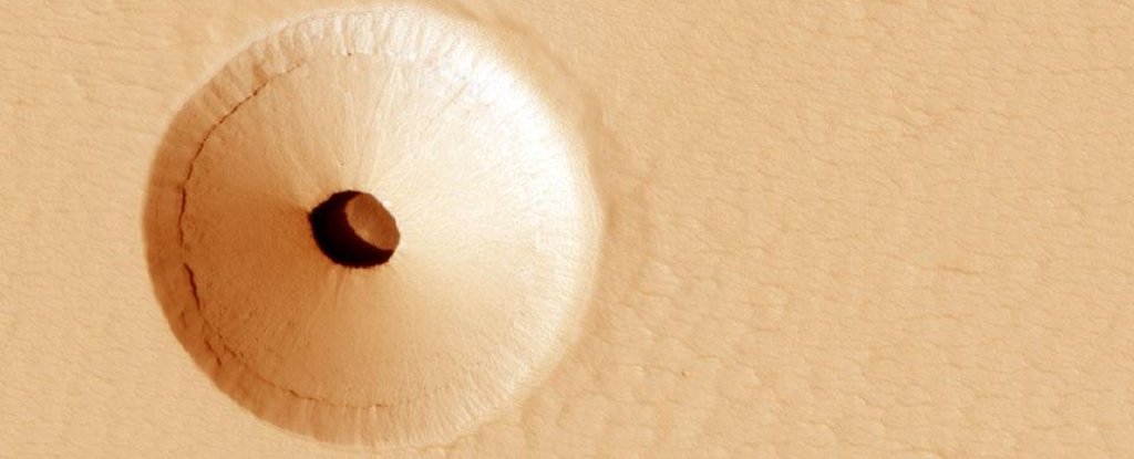 이 구멍은 화성 표면 아래에 있는 고대의 화산이 만들어낸 용암 동굴의 "채광창(skylight)" 입니다.