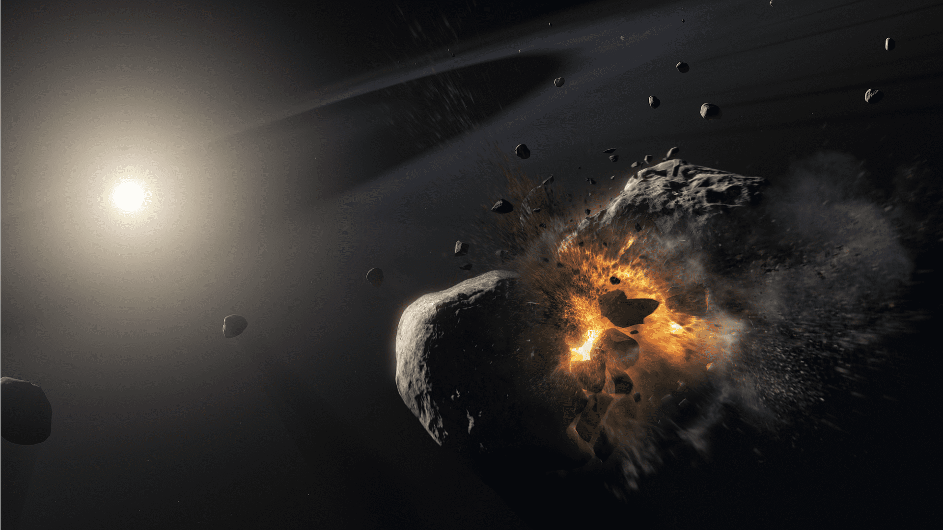 파편들 중에는 킬로미터 급의 우주 암석들이 뒤섞여 있을 수도 있지만, 대부분은 미세한 먼지가 되어 우주로 퍼져나갔습니다.