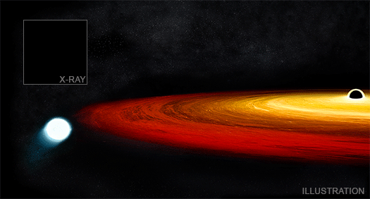 이때 블랙홀은 백색 왜성의 가스를 대량으로 빨아들여 아주 강렬한 X선 플레어를 방출했습니다.