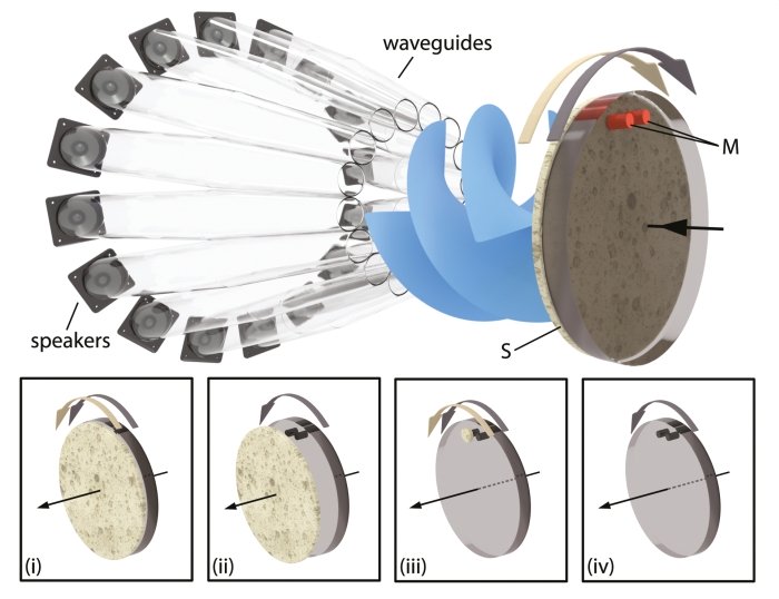 연구팀은 먼저 음파를 비틀어 발사할 수 있는 링 형태의 스피커를 준비했습니다.