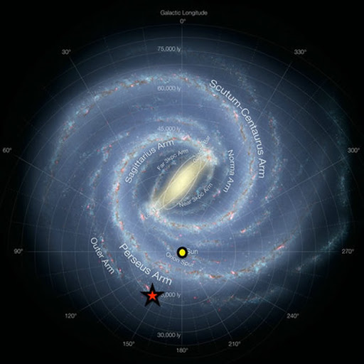 J0406은 지구에서 약 3만 광년 떨어진 은하의 바깥 쪽 가장자리에서 발견되었는데요.
