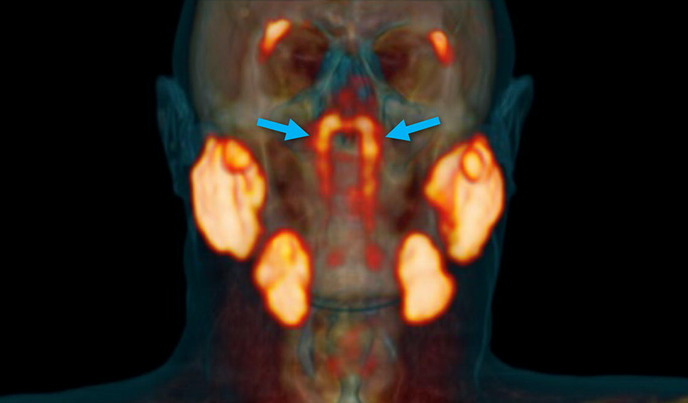과학자들은 이 장비를 이용해 암 환자를 조사하는 과정에서 비인두 쪽에 숨겨져 있던 침샘을 우연히 발견하게 된 겁니다.