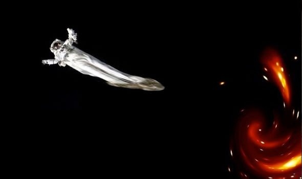 이쯤되면 그 다음 장면은 충분히 예상할 수 있을 겁니다. 바로 몸이 스파게티 처럼 주욱 늘어나 안쪽으로 빨려들어가게 되는거죠.