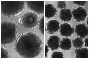 그런데 하이브리드 뇌는 인간의 뇌보다 훨씬 작고 표면이 불규칙했으며, 또한 크기도 훨씬 더 작았죠.