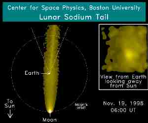 특히 달이 지구와 태양 사이에 들어올 때 나트륨의 꼬리는 지구를 덮치게 됩니다.