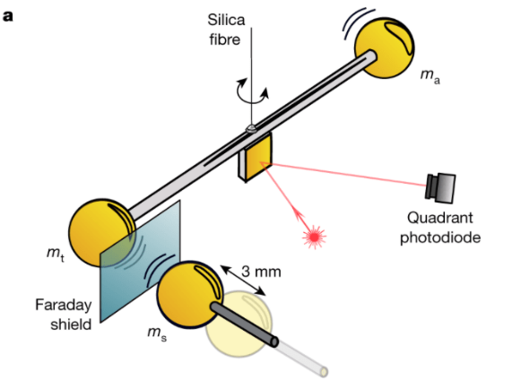 즉, 두 구슬 사이에서 일어난 중력 상호 작용에 의해 유리 막대가 미세하게 움직여 반사된 레이저를 비틀고 있었던 겁니다.