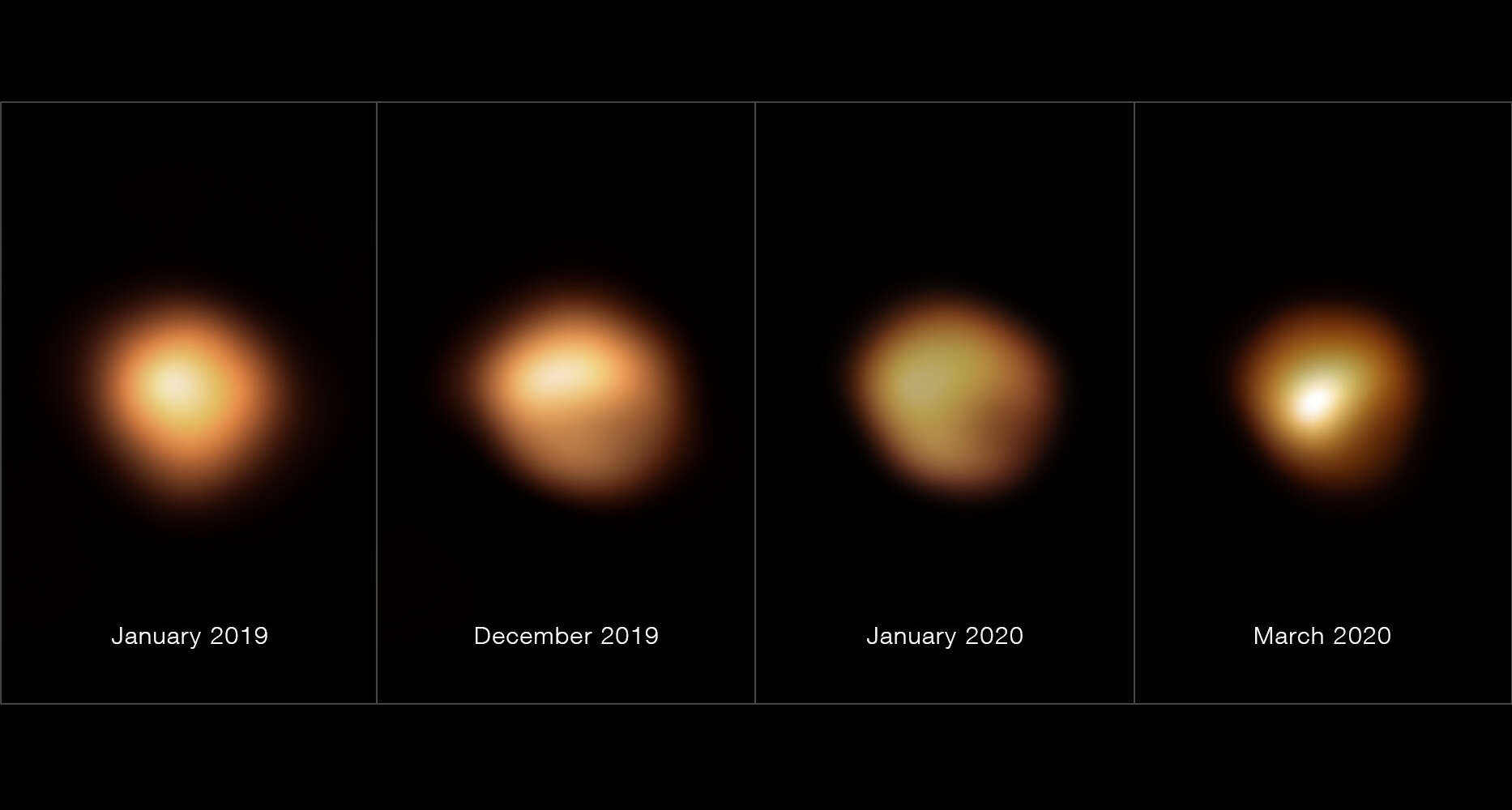 과학자들은 운이 좋게도 별이 어두워지기 몇 개월 전인 2019년 1월에 베텔게우스의 모습을 촬영했었습니다.
